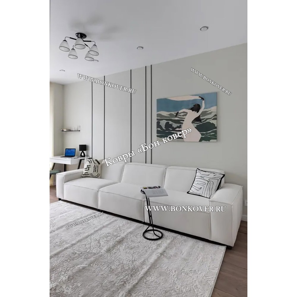 Шикарный Белый Ковер Для Гостиной Дизайн 25577 наполняет интерьер помещения теплом и уютом, гармонично сочетает в себе изящество и стиль. Он создан из экологически чистого сырья, прочный и долговечный.
