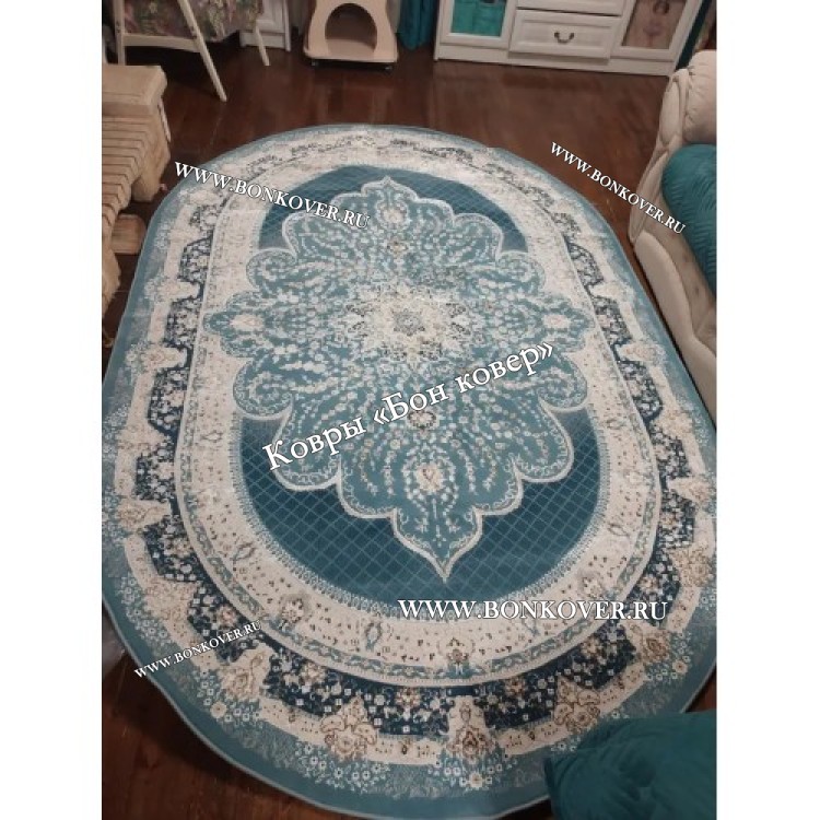 Иранский овальный ковер в гостиную арт 28775 станет привлекательным дополнением интерьера, оформленного в современном или классическом стиле. Мягкое, но прочное, ковровое изделие обеспечивает тепло- и шумоизоляцию, отличается длительным сроком эксплуатации, пожаробезопасностью, экологичностью и высокой износостойкостью, является отличной защитой от повышенной влажности в помещении и утеплителем для холодного пола. Благодаря качеству материалов, ковер не деформируется, сохраняет форму под тяжестью предметов мебели. За его поверхностью легко ухаживать.
