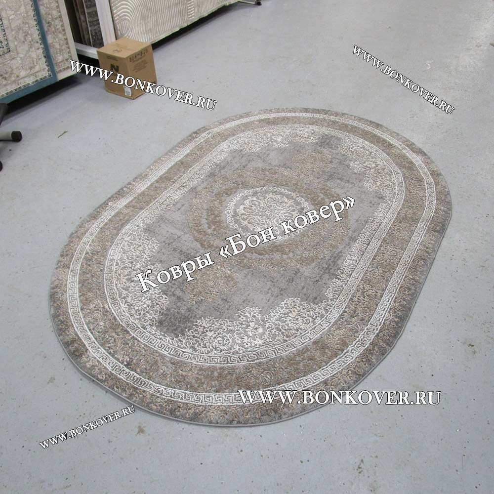 Шикарный Классический ковер дизайн 93 Коричневый с серым овал наполняет интерьер квартиры теплом и уютом, гармонично сочетает в себе изящество и стиль. Он соткан из экологически чистого сырья, комфортный и долговечный.