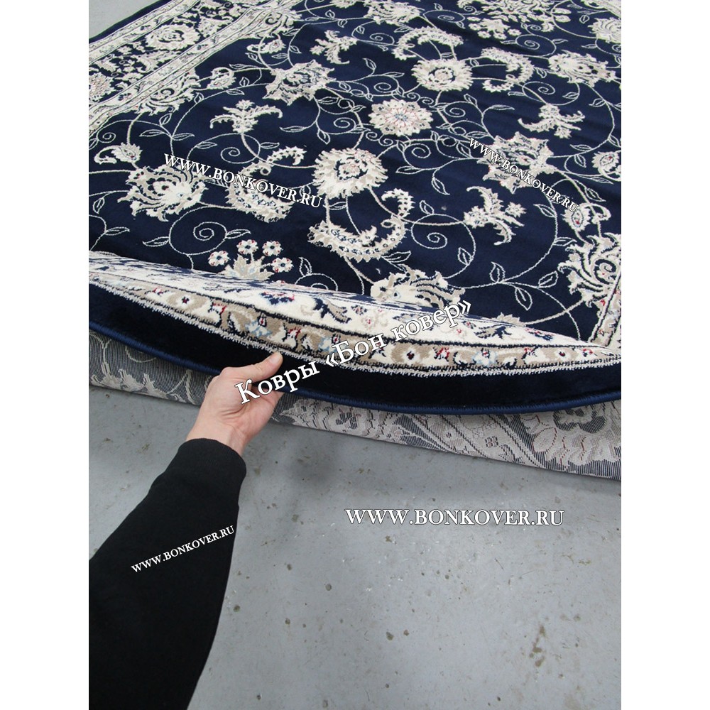 Изящный Овальный Ковер Для Гостиной Дизайн 30596 Темно-Синий наполняет интерьер квартиры теплом и уютом, гармонично сочетает в себе изящество и стиль. Он соткан из высококачественного сырья, прочный и долговечный.