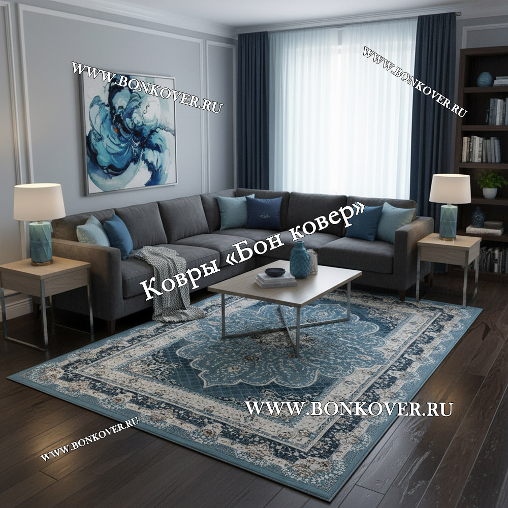 Турецкий Ковер Для гостиной New дизайн 82 Синий станет стильным преображением жилого помещения, подчеркивая высокий статус семьи владельца.
